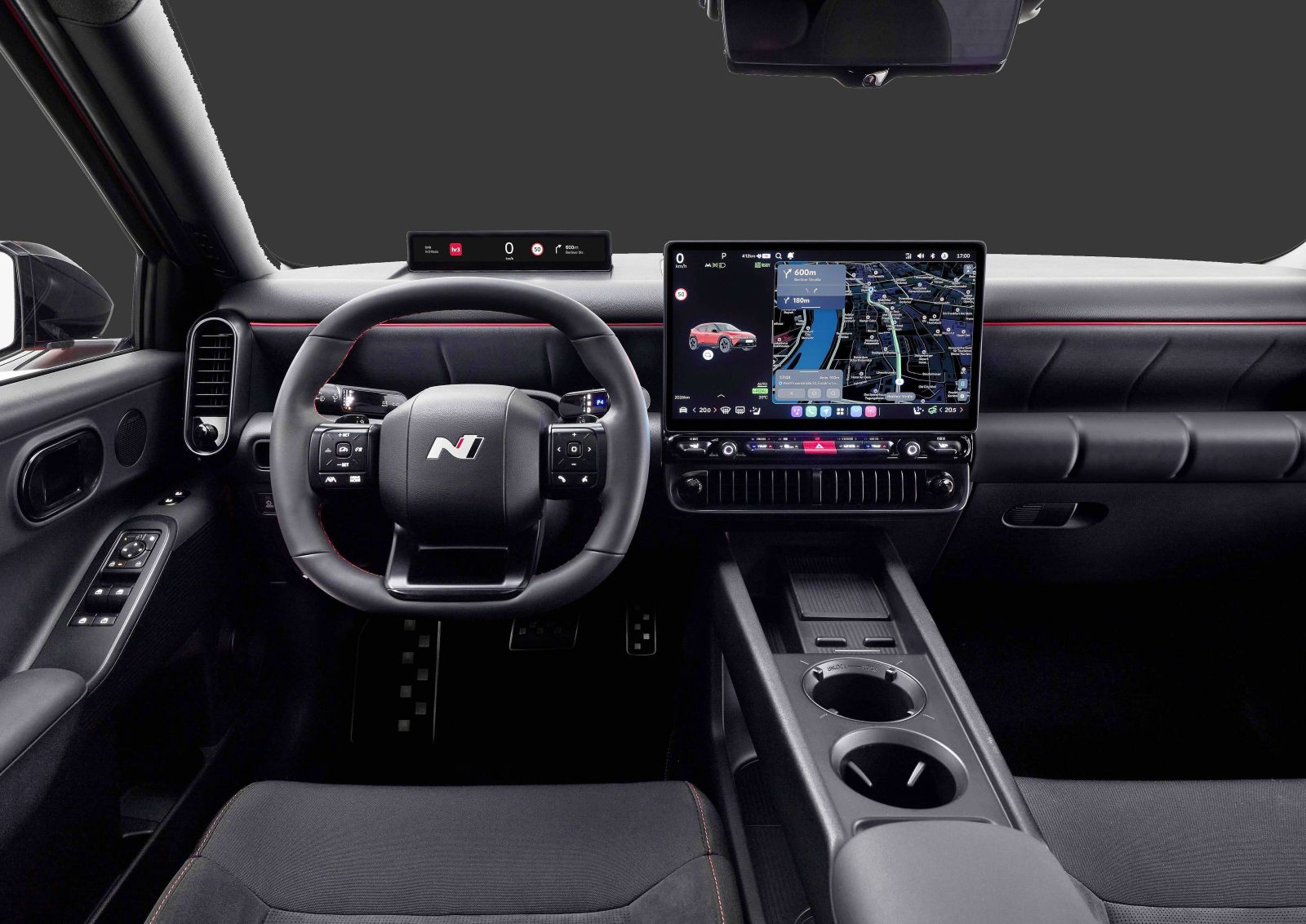 La interior, IONIQ 3 marchează debutul european al noului sistem multimedia Pleos Connect. Bazat pe arhitectura Android Automotive OS (AAOS), sistemul promite o interfață ultra-rapidă și intuitivă, afișată pe ecrane de mari dimensiuni (12.9 inch în standard sau 14.6 inch opțional).